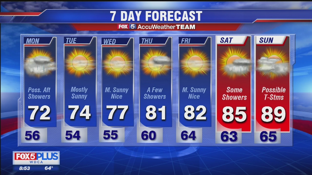 Chance of Monday afternoon showers. Lots of sunny days coming this week.