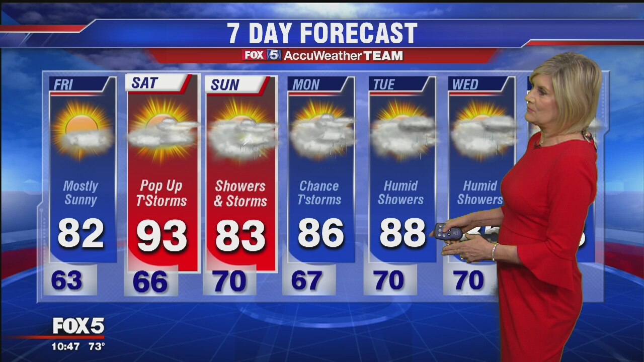 FOX 5's Sue Palka has the latest on Friday's weather forecast and a look ahead to the weekend.