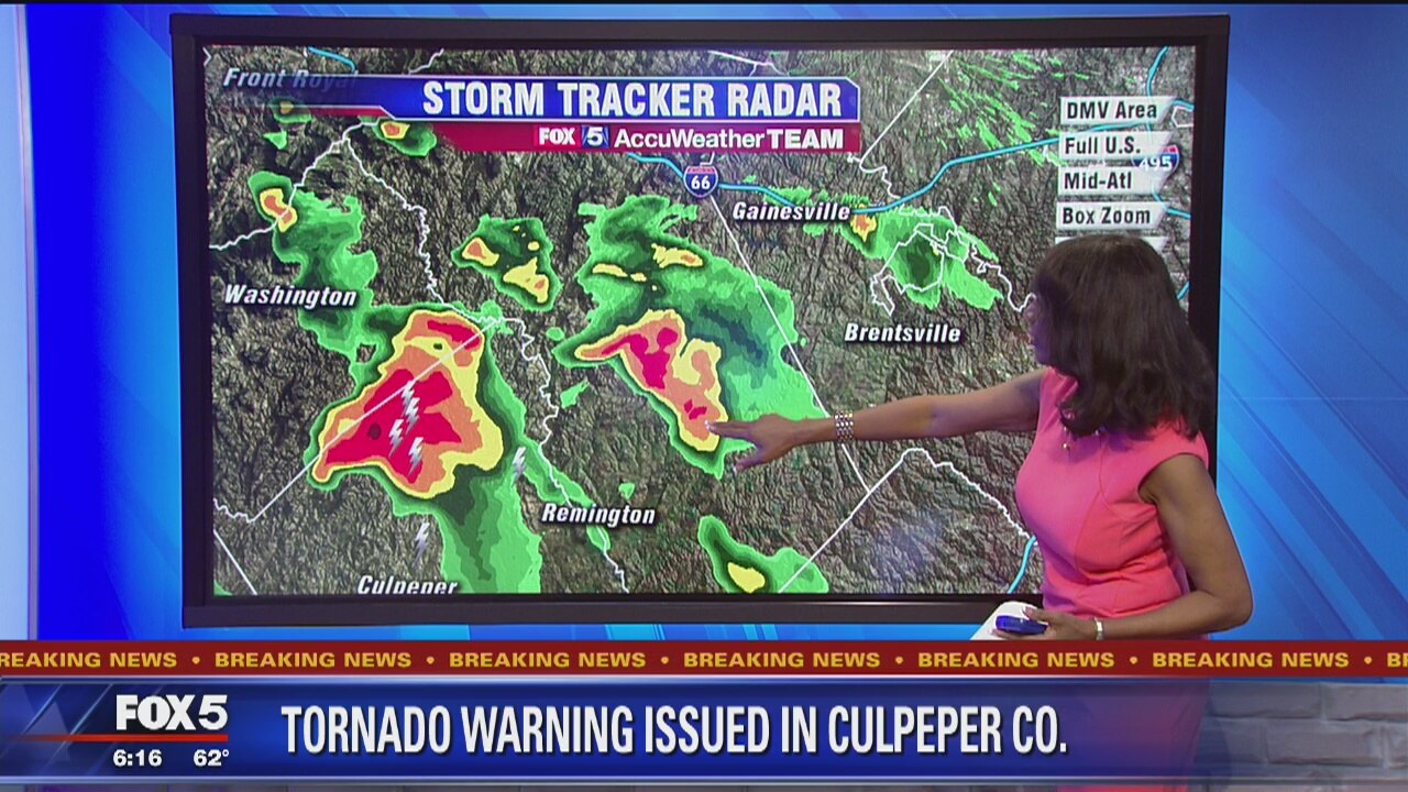 Tornado warning issued for Culpeper, Virginia as severe thunderstorm, weather warnings in effect for parts of Virginia and Maryland