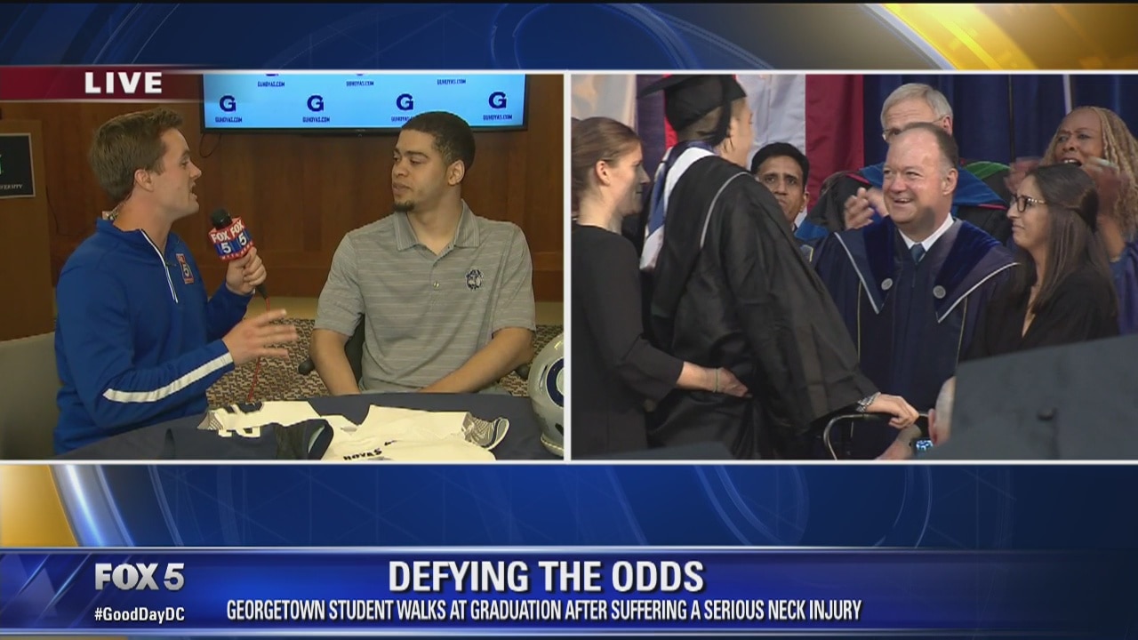Defying the Odds: Paralyzed Georgetown football player Ty Williams walks during graduation ceremony