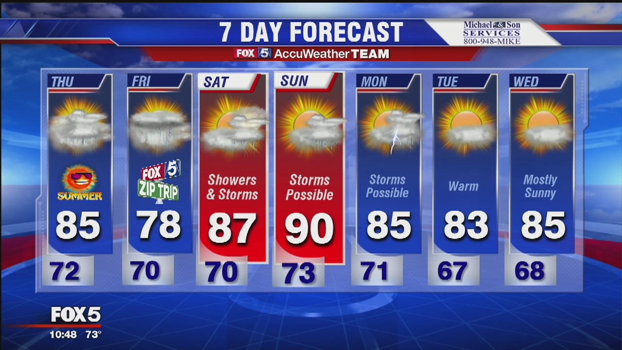 FOX 5's Caitlin Roth has your weather forecast update for the first day of summer.