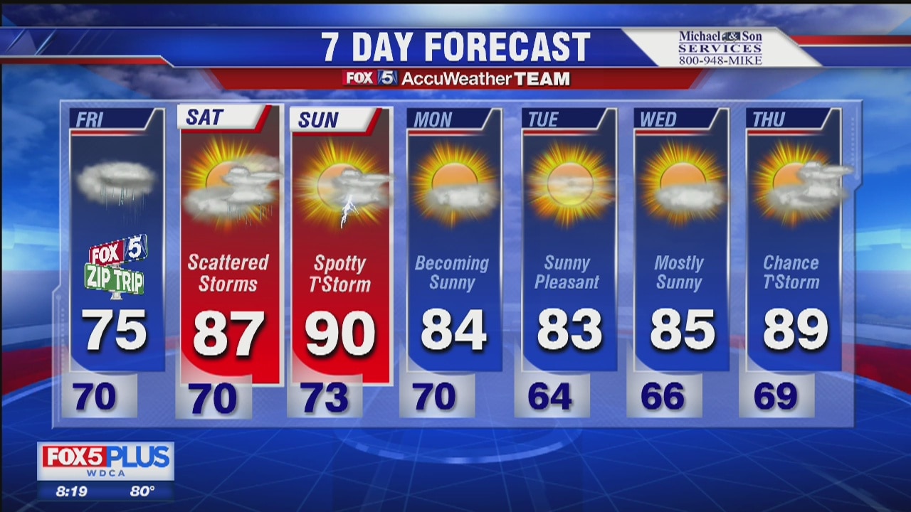 FOX 5's Caitlin Roth has your weather forecast update for Friday and the upcoming weekend.