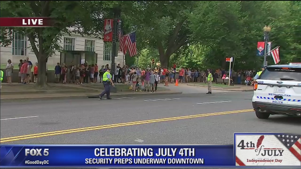 The National Independence Day Parade begins at 11:45 a.m. and includes marching bands, fife and drum corps, floats and more. The parade route runs for one mile, starts at the corner of Constitution Ave NW and 7th St NW and ends around 2 p.m. at Constitution Ave NW and 17th St NW.