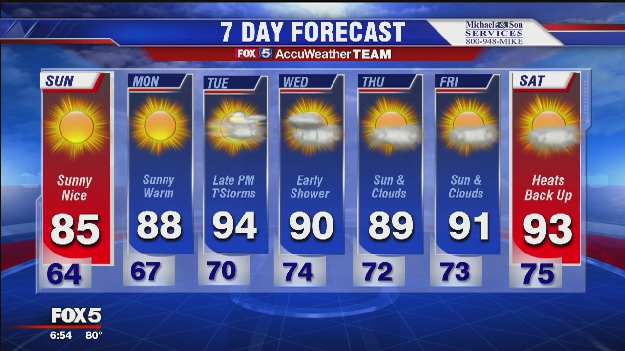 Saturday night will be very comfortable and cool. Sunday will be beautiful as well, warming up next week. Tuesday afternoon and evening will have a chance for showers.