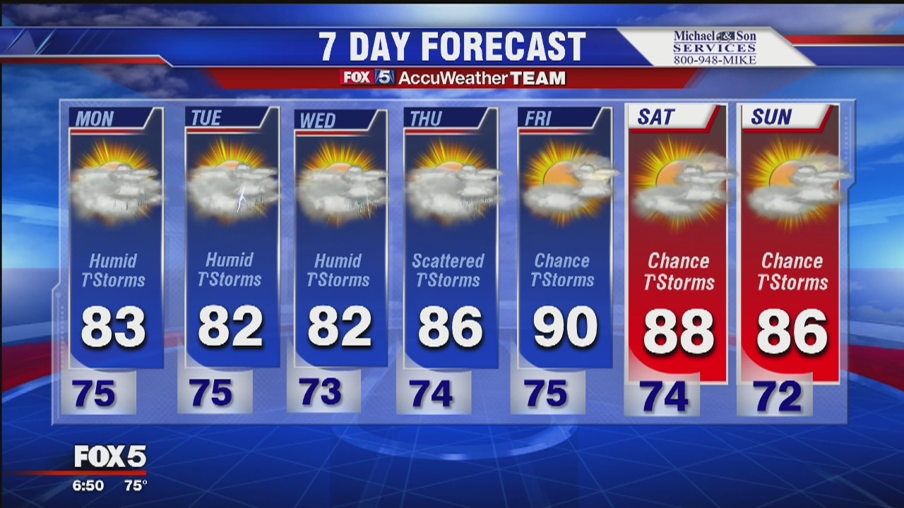 Lots of rain this weekend and there's still more on the way this week. More showers and storms on Monday. Temps in the lower 80s.