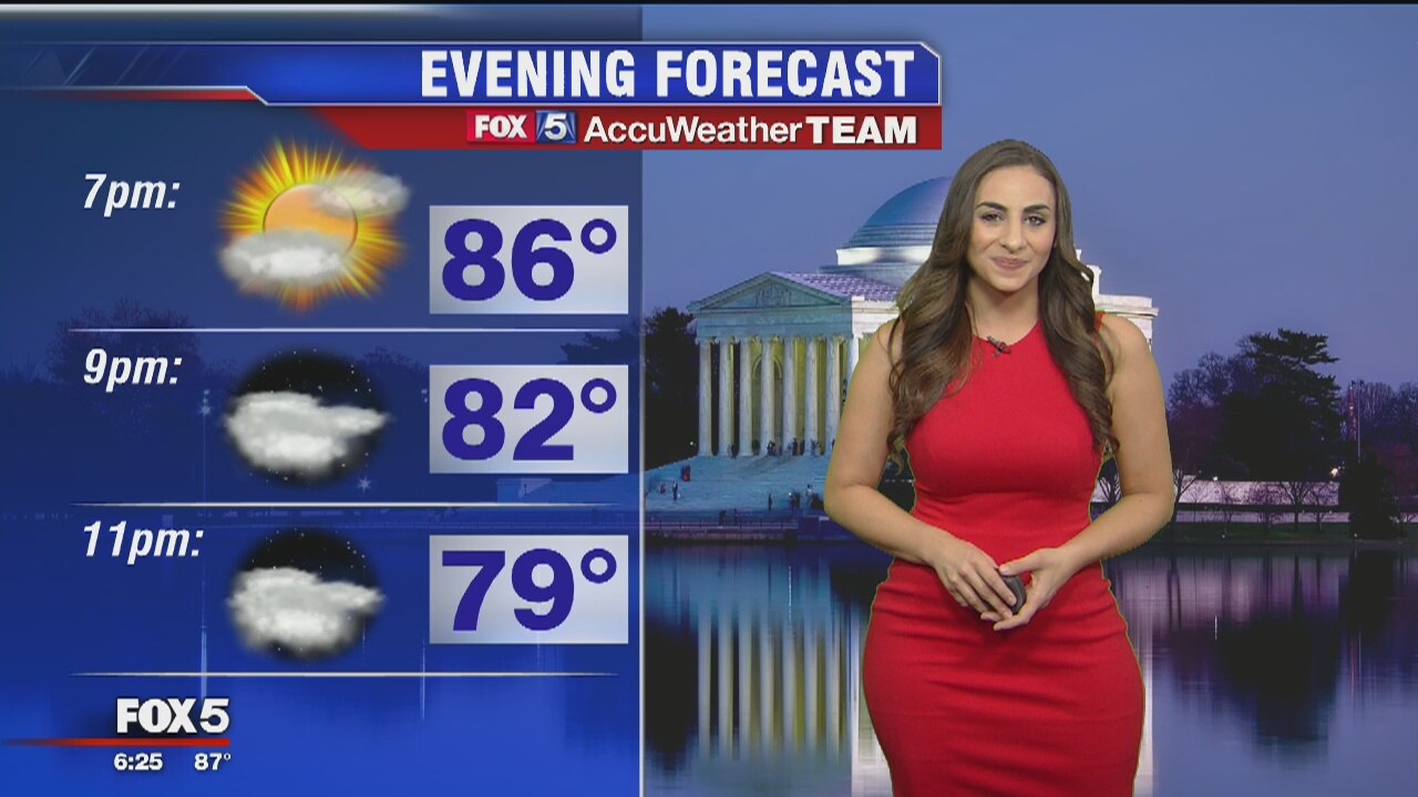 Temps in the mid 80s Sunday evening. Partly cloudy with temps in the upper 70s for Sunday night.