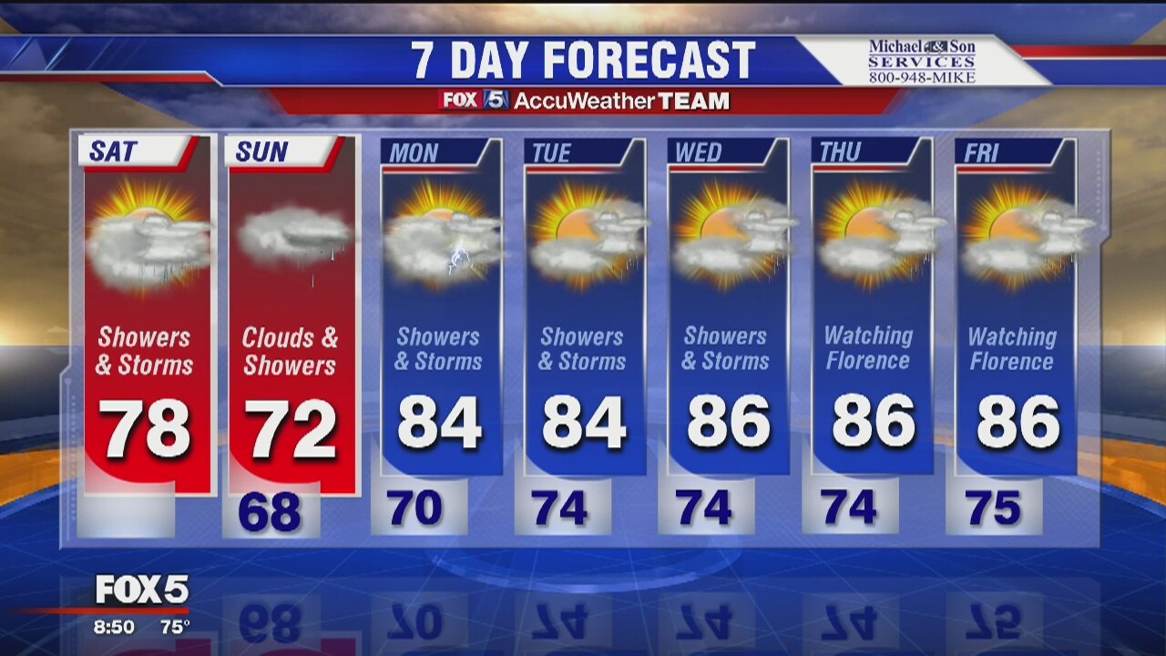 Saturday forecast -- tracking Tropical Storm Florence
