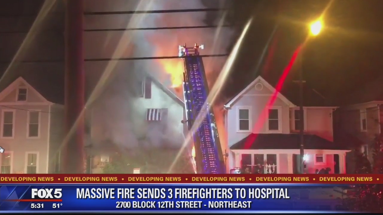 3 firefighters injured battling blaze in Northeast DC
