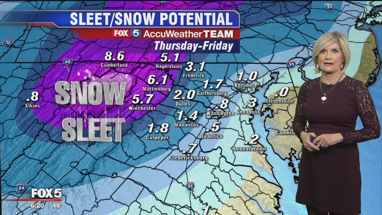 FOX 5's Sue Palka has more on the wintry mix that could affect parts of Maryland, Virginia and West Virginia.