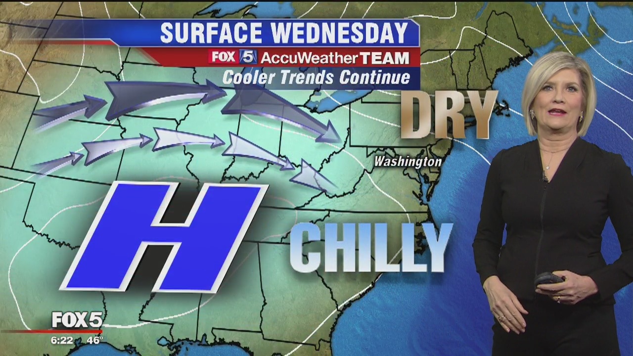 FOX 5's Sue Palka has your Wednesday weather forecast and a look ahead to a cold Thanksgiving Day.