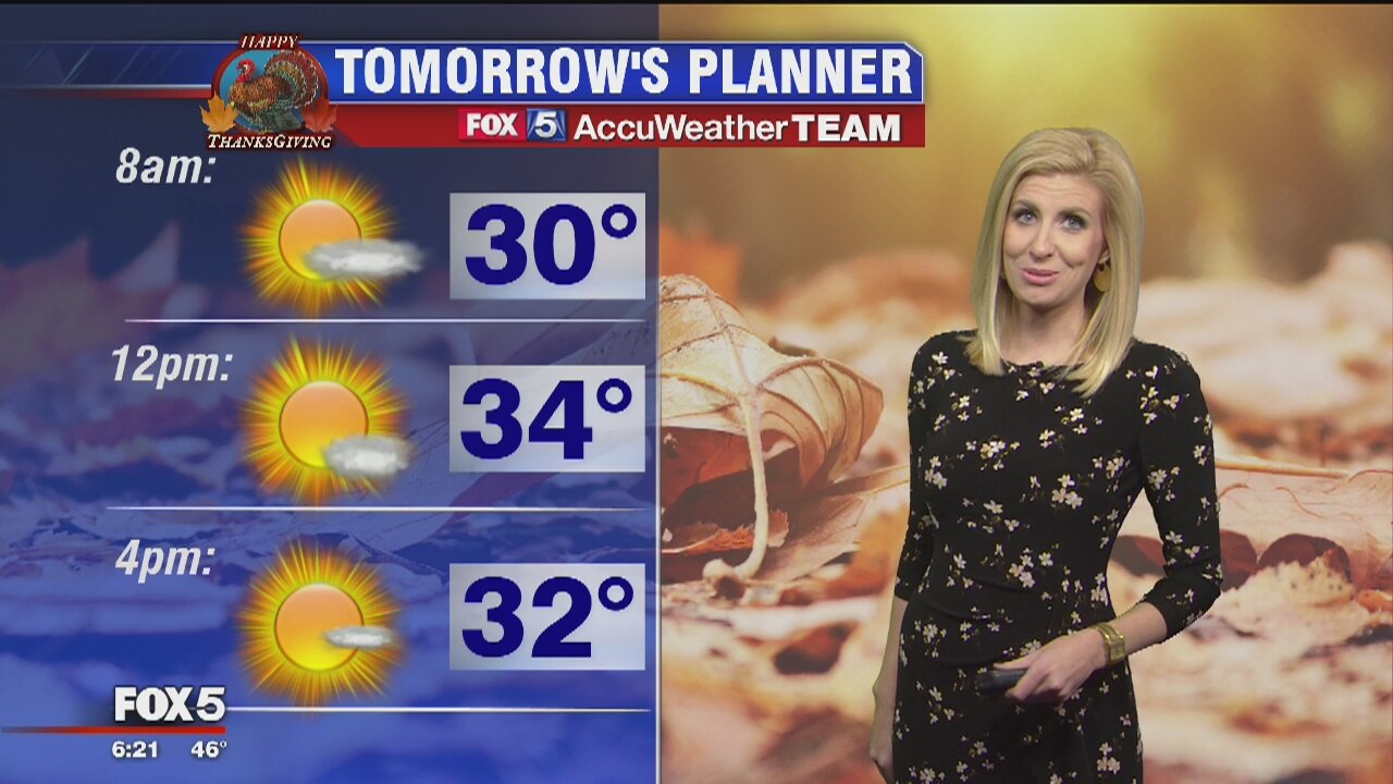 FOX 5's Caitlin Roth has your Thanksgiving Day weather forecast update.