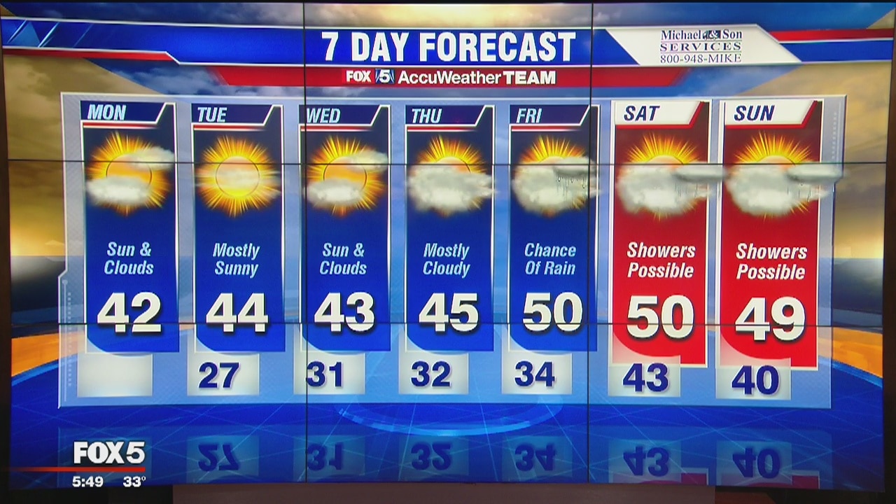 Chilly temps Monday as central and southern Virginia get hit by snow. More sunshine for Tuesday. Temps in the upper 40s-lower 50s by the weekend.