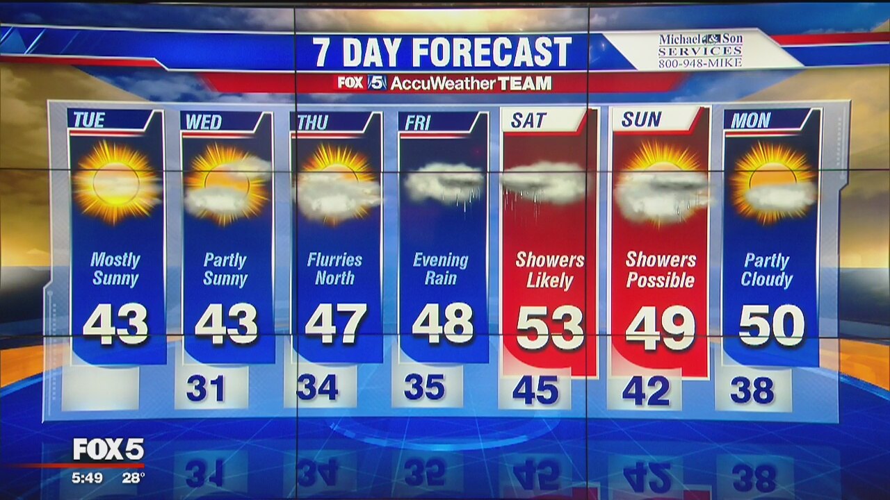 Some sunshine Tuesday, but remains chilly with temps in the 40s. Rain expected later in the week.