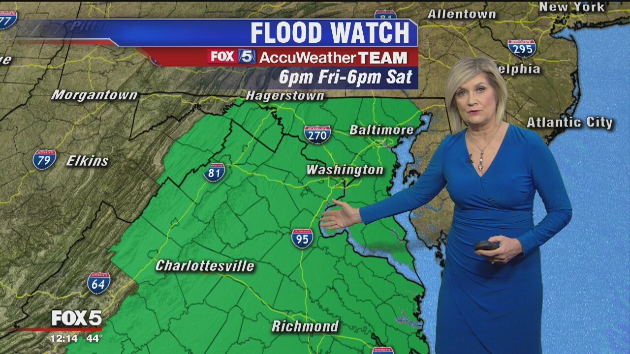 A Flood Watch will go into effect Friday evening. FOX 5's Sue Palka has the latest with your D.C. area weather forecast.