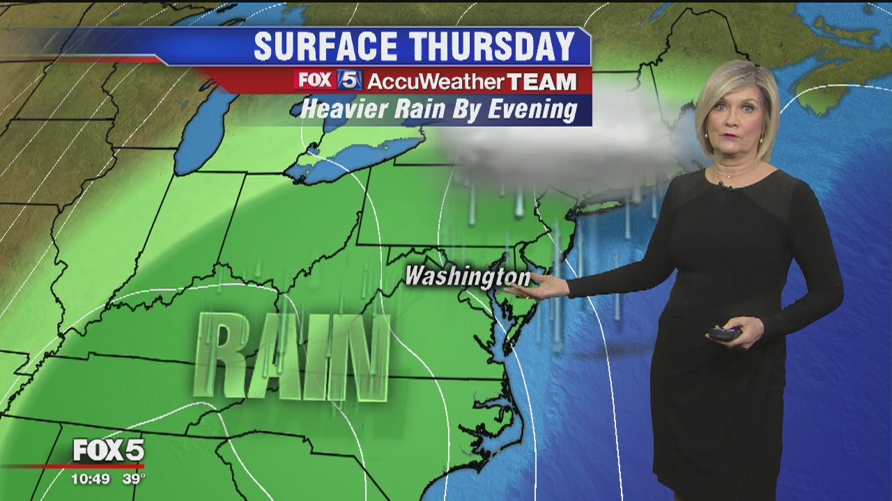 FOX 5's Sue Palka has the latest on the rain in the weather forecast for Thursday.