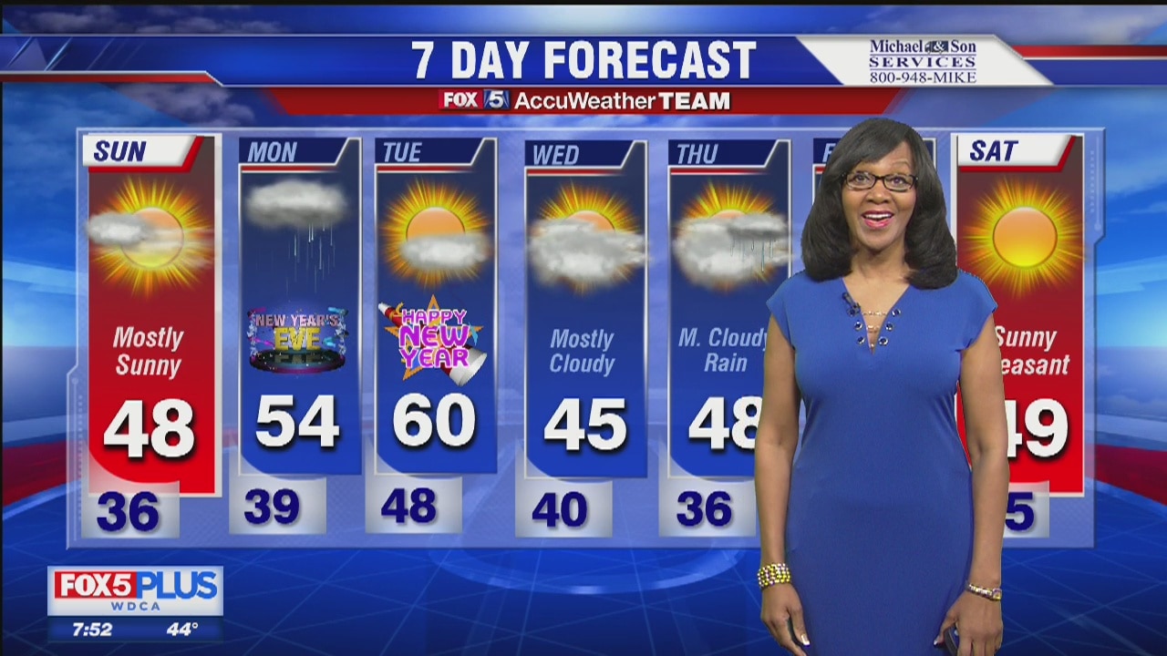 A colder night for Saturday, with temps in the 30s. Sunday will be sunny and pleasant, but we will have some wet and warmer weather for New Year's Eve. New Year's Day *2019* starting the year off mild with clouds and sun.