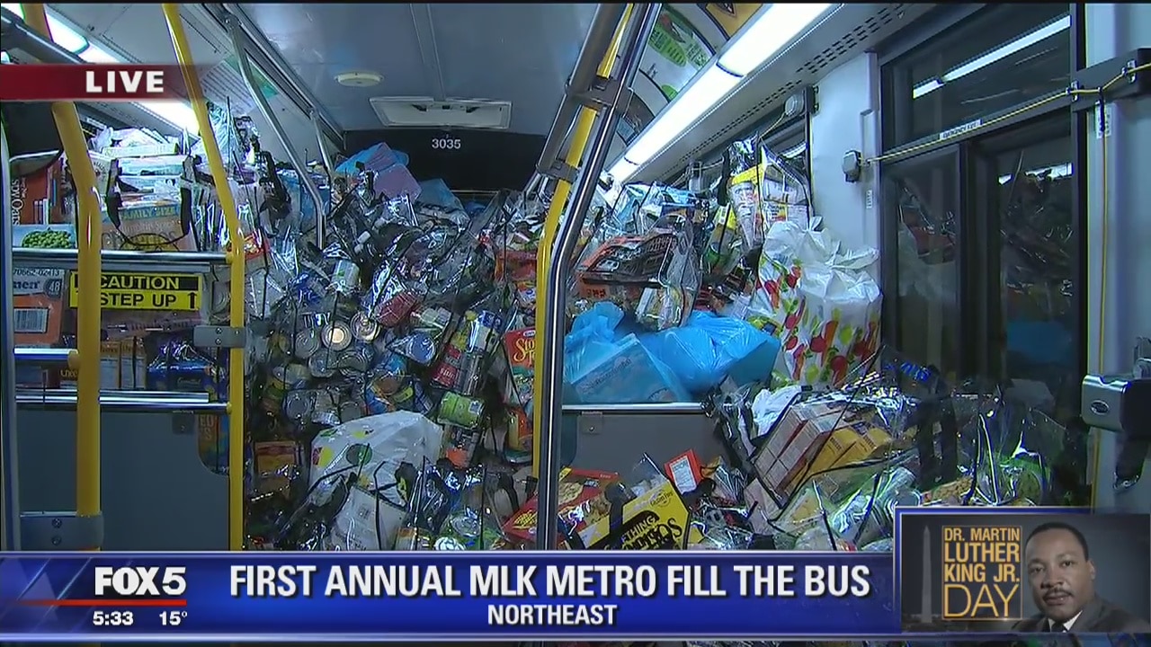 A bus full of food collected by Metro workers will be delivered to the Capital Area Food Bank on Dr. Martin Luther King, Jr. Day to help families in need.