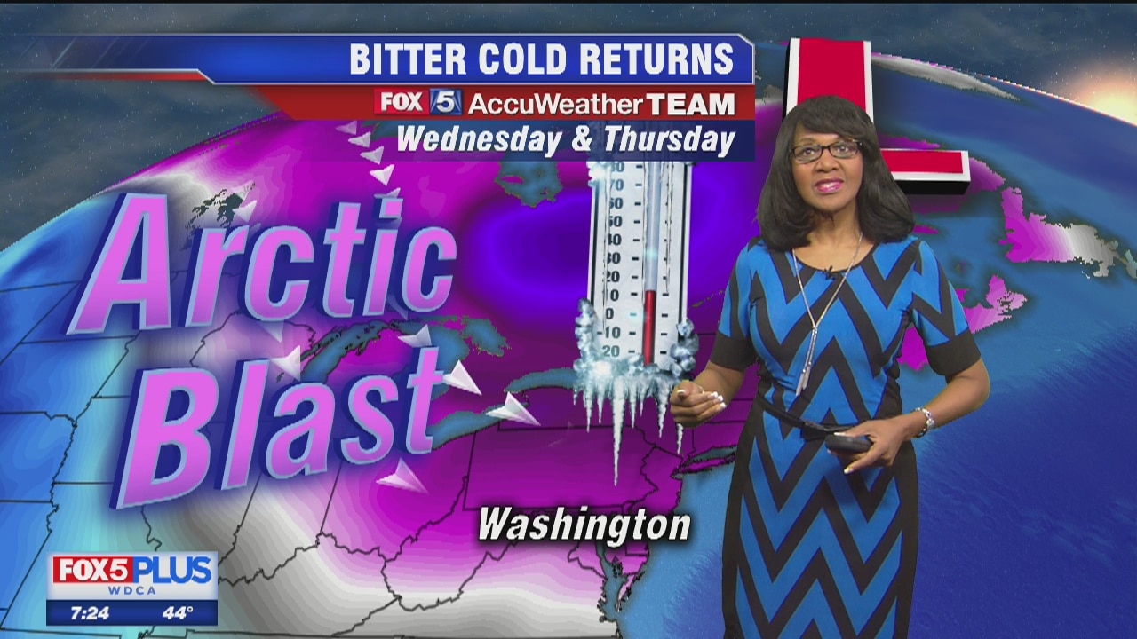 Monday, partly sunny with temps in the upper 30s. By Tuesday, rain or a wintry mix -- but temps will drop by rush hour and we could see some snow. While their won't be much accumulation, it will become icy with a flash freeze. An arctic blast will come through by Wednesday and Thursday.