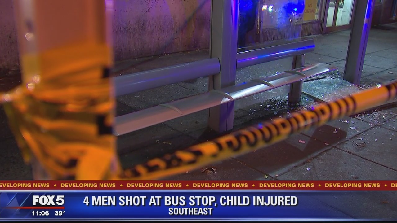 D.C. police are investigating after four people were shot and a child was injured at a bus stop in Southeast on Monday afternoon.