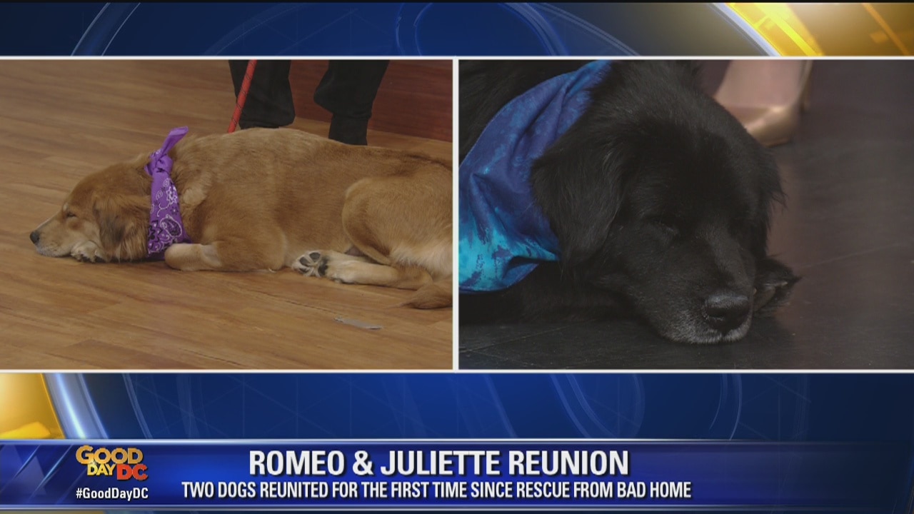 This is the moment two very good dogs, Romeo and Juliet, were reunited after being rescued from a bad home.