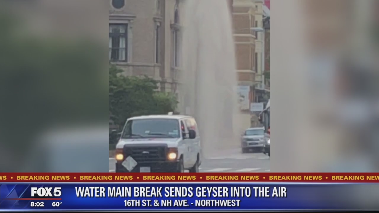 A geyser of water shot high into the air after a water main break in downtown D.C. Images showed the spray of water near the intersection of 16th Street and New Hampshire Avenue.