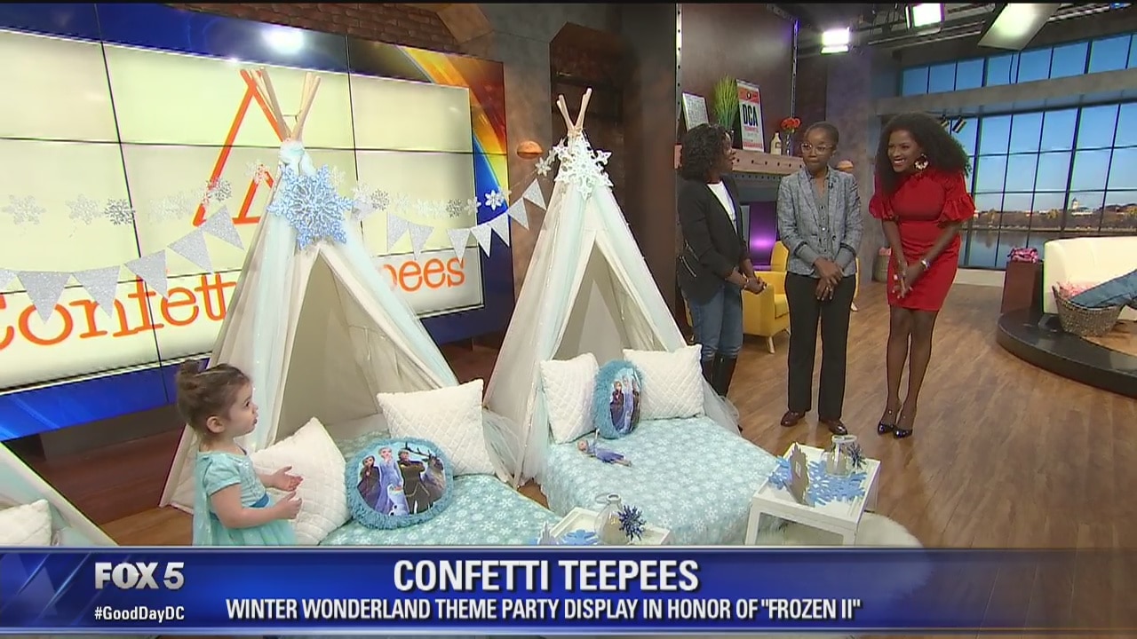 The founders of Confetti Teepees create winter wonderland theme party display in honor of "Frozen II."