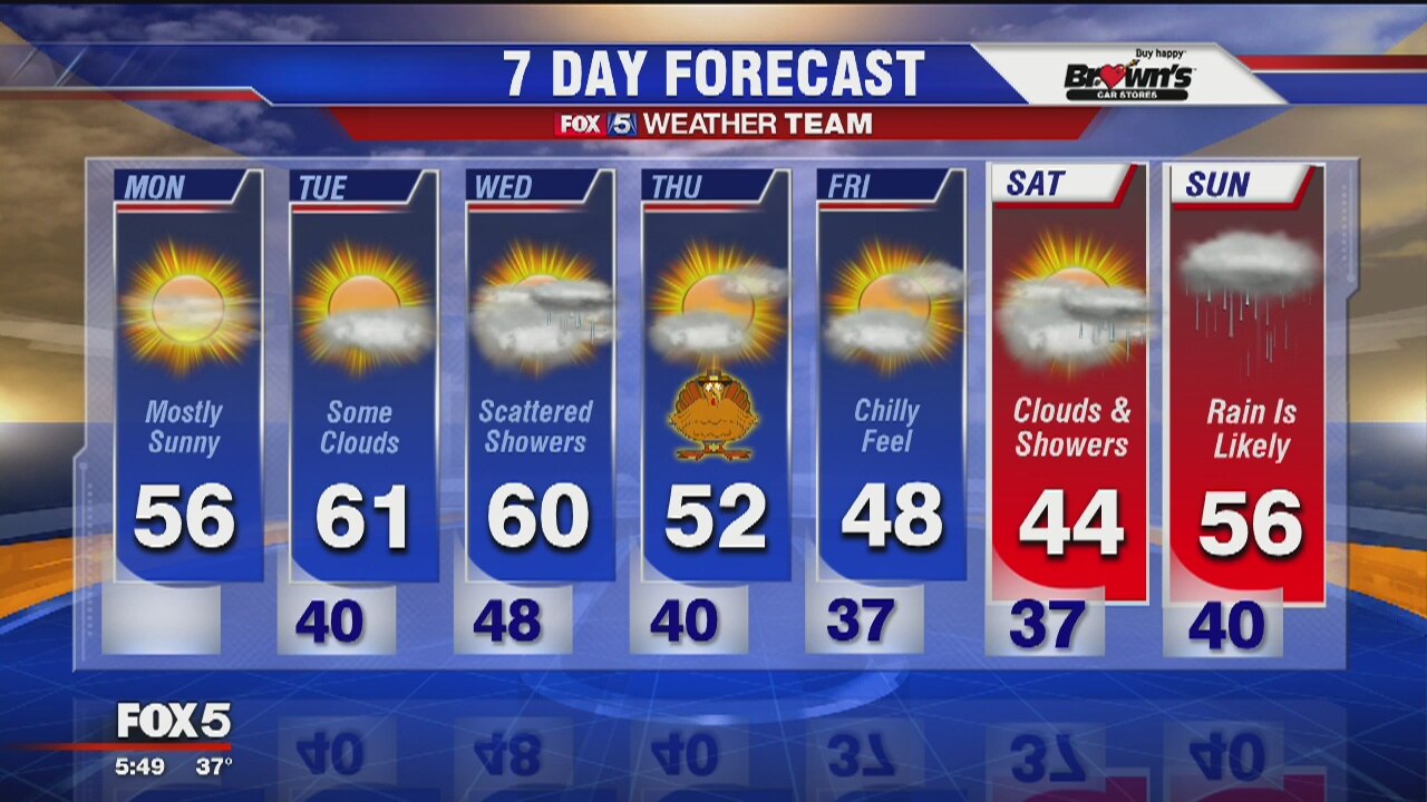 FOX 5 Weather forecast for Monday, November 25, 2019