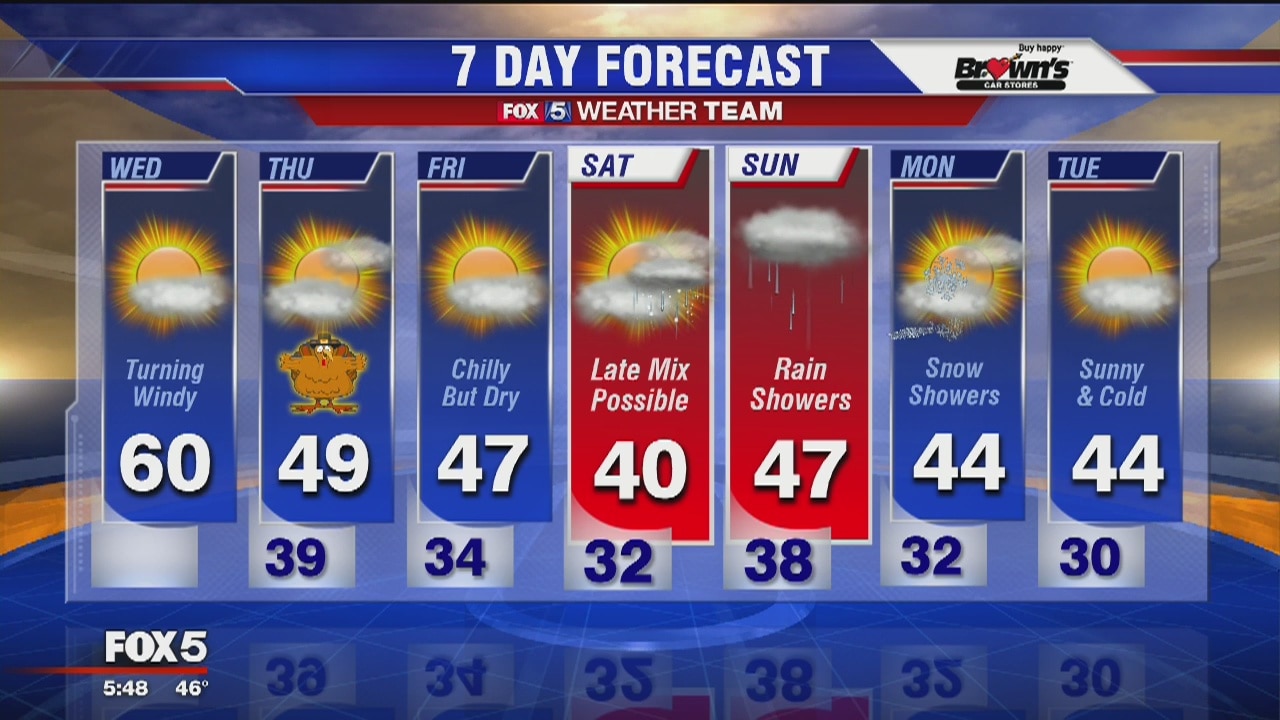 Mike Thomas has the FOX 5 Weather forecast for Wednesday, November 27.