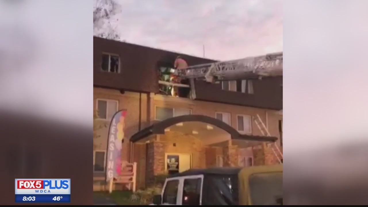 Authorities say 10 people, including four children, were transported and dozens were displaced after an early morning apartment building fire in Montgomery County.