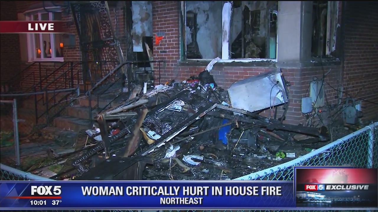 A grandmother dropped her two-year-old grandson from a second-story window to save him from a raging fire that left her with critical injuries early Sunday in Northeast D.C.