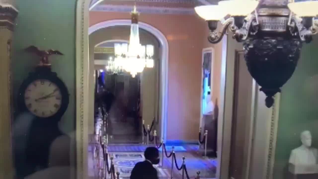 Video shows USCP Officer Eugene Goodman telling Sen. Mitt Romney to turn around to avoid rioters.