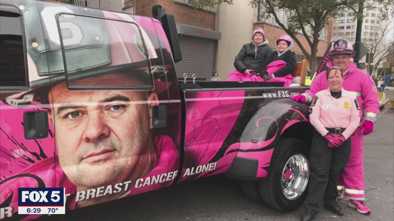 Marshall Moneymaker, 'The Pink Fireman', is spreading a message about breast cancer awareness in honor of his sister.
