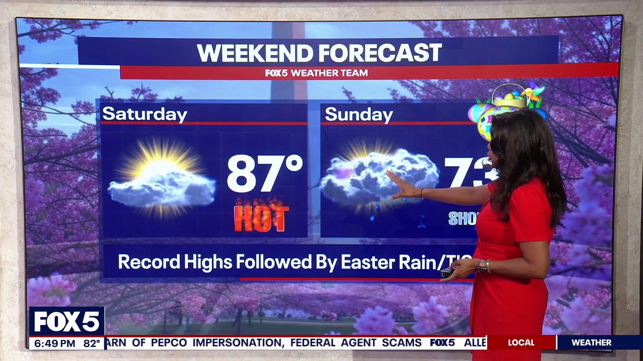 Record high temperatures are expected Saturday and some rain is expected Sunday. FOX 5's Jennifer Delgado has the latest forecast.