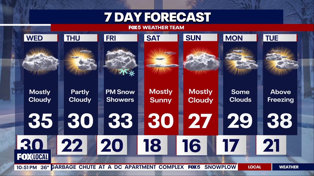 Today was our first time in the 40s in 11 days! Some snow showers possible overnight ahead of colder temperatures moving back in for the remainder of the week. FOX 5's Mike Thomas has your full forecast.