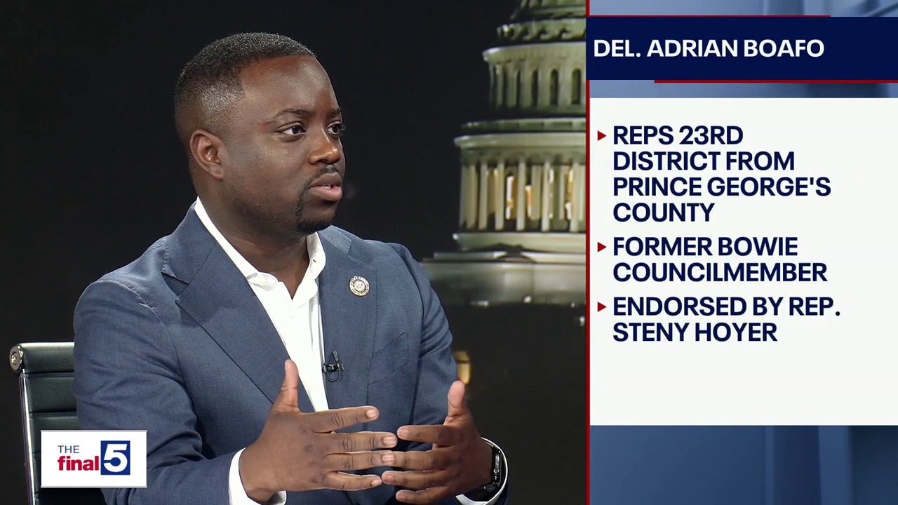The retirement of longtime Maryland Rep. Steny Hoyer is opening up a seat across the sprawling 5th District, and Prince George's County-area Del. Adrian Boafo is seeking to succeed his former boss, who has endorsed his campaign. He joins The Final 5 ahead of the June Democratic primary to explain why he's in the race and what the major issues will be for voters.