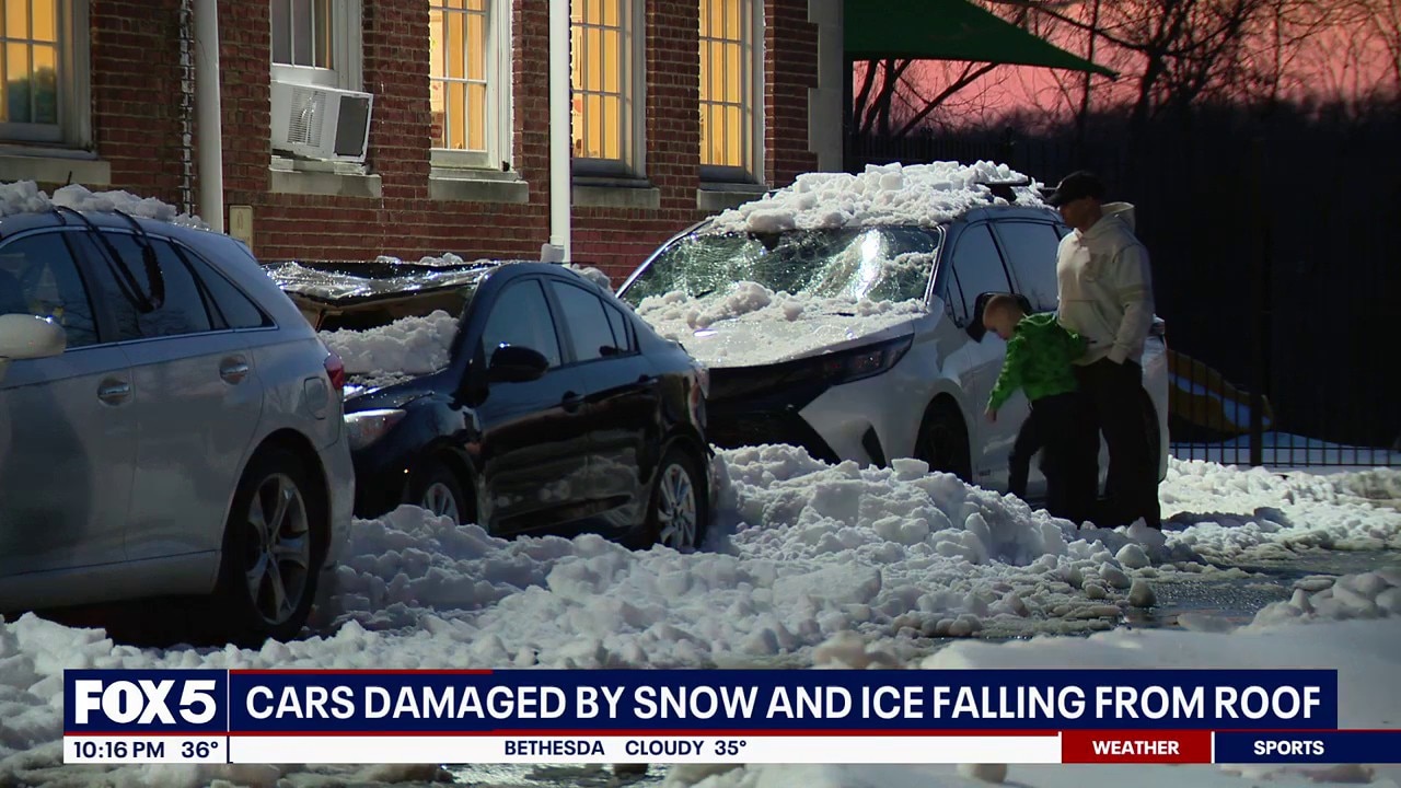 Falling snow and ice smashed cars on the street outside of an elementary school in Northwest D.C. FOX 5's Shomari Stone has the story.