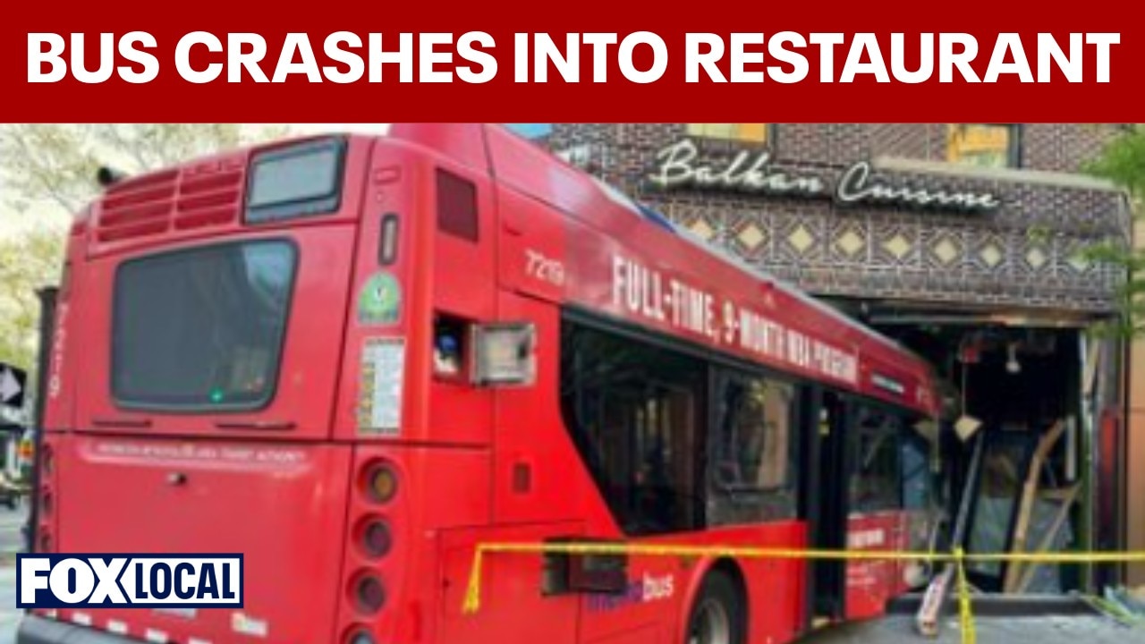Bus crashes into AMBAR Restaurant in DC, partially inside building; 4 checked for injuries
