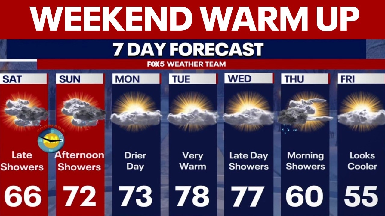 After a chilly Friday, we are finally going to start a nicer warm-up this weekend, though we'll still be dodging some weekend showers. FOX 5's Mike Thomas has your full forecast.