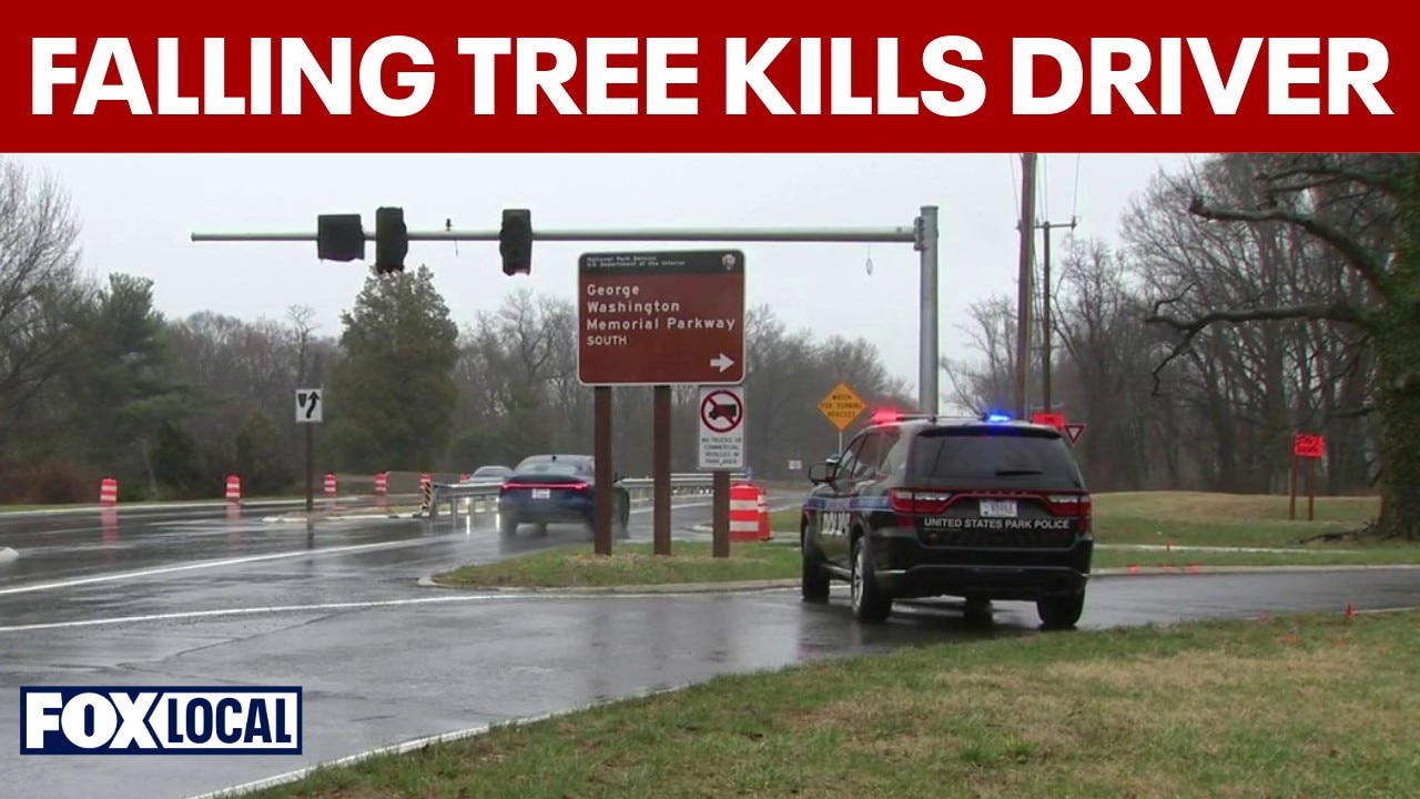A deadly crash shut down GW Parkway for hours after a tree fell on a car, killing the driver. The driver has not been identified.