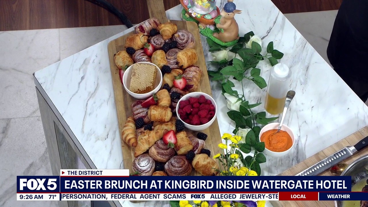 Kingbird at The Watergate Hotel is hosting an elevated Easter brunch this Sunday, April 5, from 11 a.m. to 3 p.m., featuring a menu built around seasonal spring flavors. The spread includes a variety of high-end culinary stations, such as a raw bar stocked with lobster and oysters, made-to-order roasted lamb, and fresh house-made pastries
