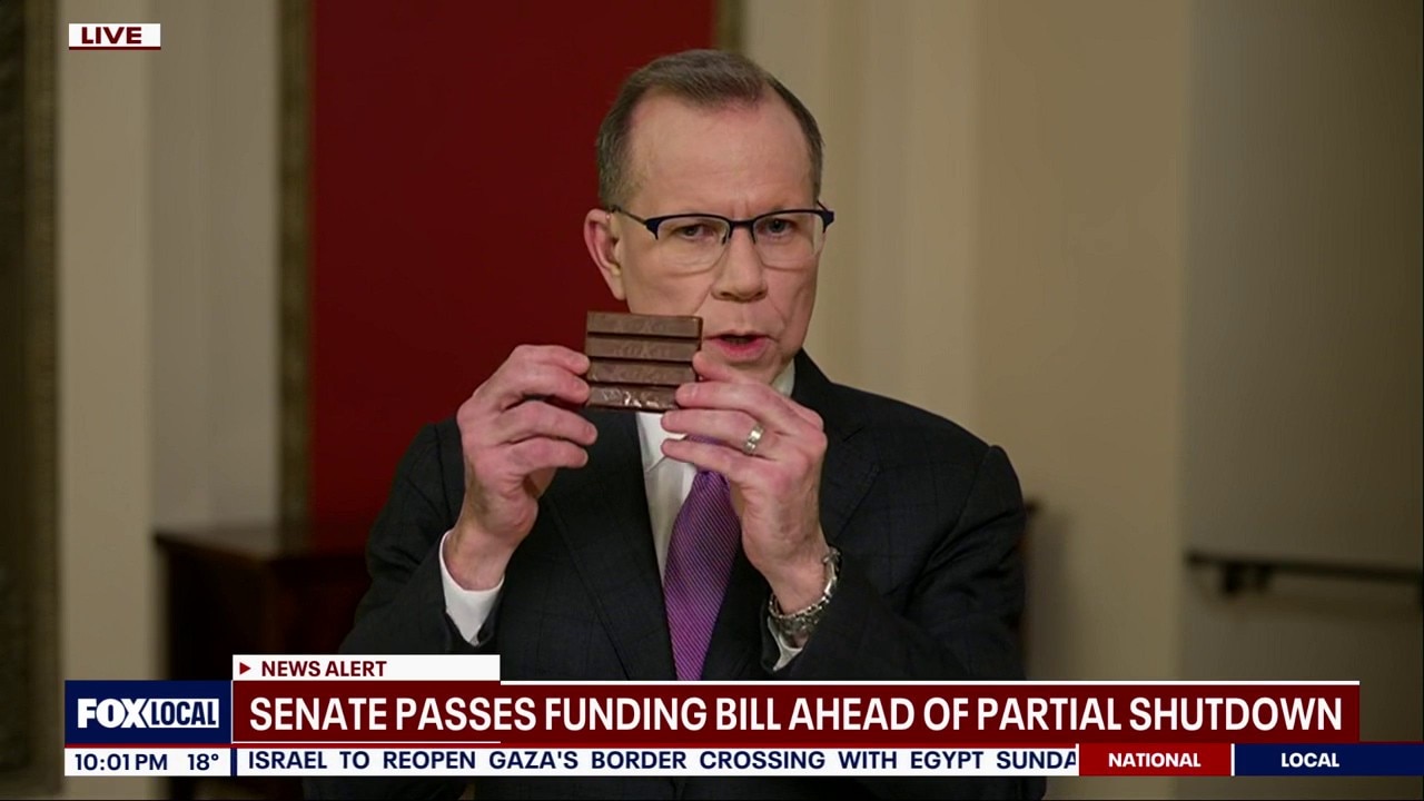 Give me a break! Fox News chief congressional correspondent Chad Pergram joins FOX 5 at 10, with the help of a tasty visual aid, to detail the back and forth that led to a Senate deal to keep the federal government funded. The measure now awaits passage in the House, possibly by Monday.