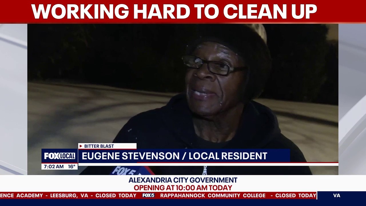 Eighty two year old Eugene Stevenson, who works with a private company, used a pickax to break up ice and clear the sidewalks outside a church in Northwest D.C.’s Petworth neighborhood early Wednesday.