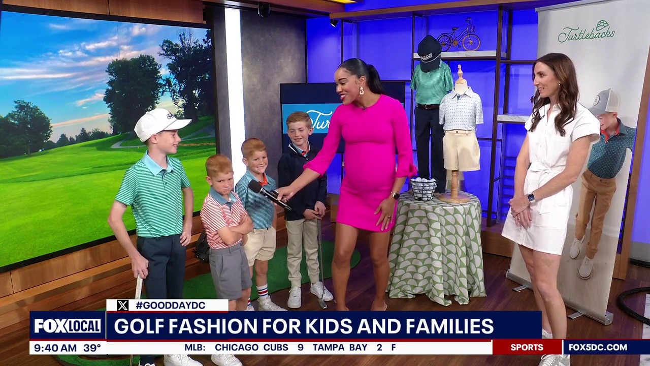 A golf-inspired apparel brand created by a mom of three is founder and CEO Emily Sprague, along with some of the junior models bringing the looks to life.