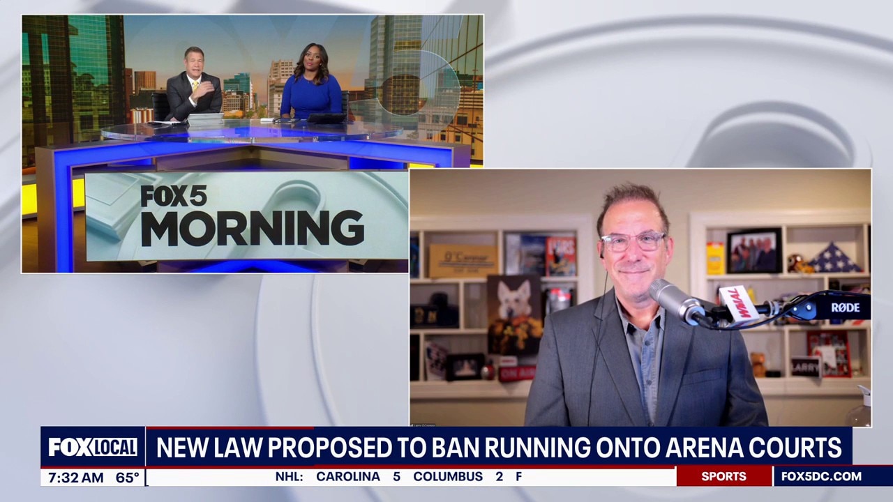 WMAL host Larry O'Connor joins Fox 5 to discuss a new law that proposes to ban people from running onto arena courts.