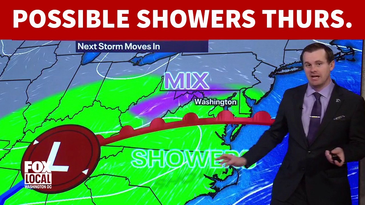 A storm system moving in to the south could bring showers and potential mix on Thursday. FOX 5's Mike Thomas has the latest forecast.