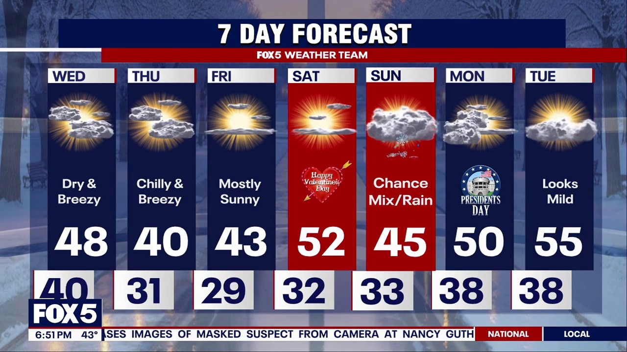 The D.C. region continues its slow thaw with more sunshine and temps near 50°F expected Wednesday, but how long can we expect it to last? FOX 5's Mike Thomas has the details in your full forecast.