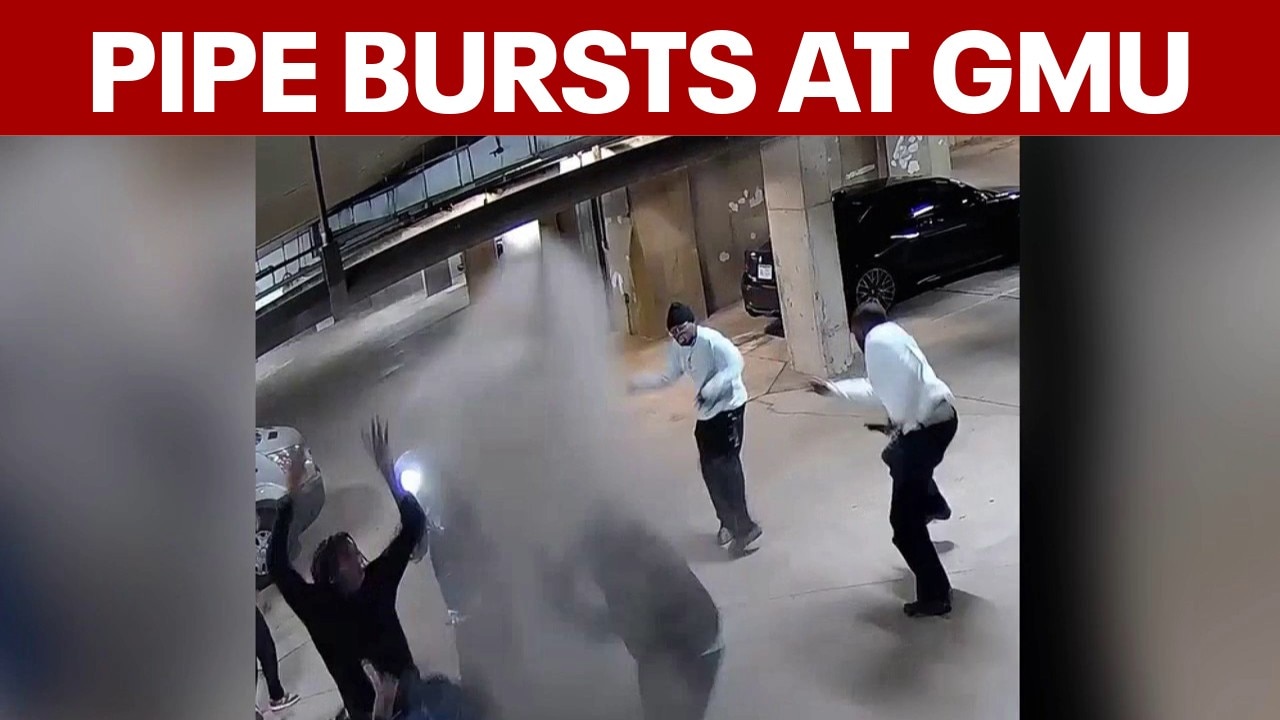 It was a major accident. Surveillance video shows a man using a water pipe as a pull-up bar until it quickly burst, flooding a parking garage at George Mason University in Arlington County. FOX 5's Regina Yurrita reports.