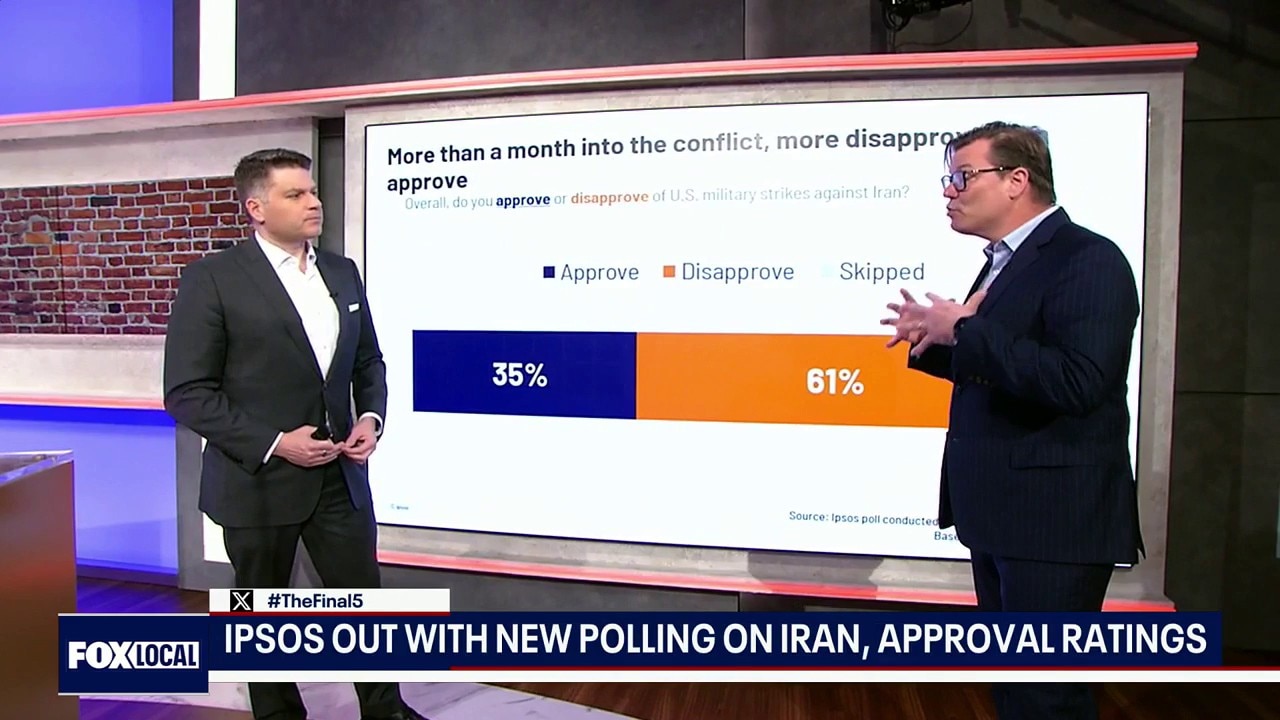 Ipsos’ Cliff Young told The Final 5 that President Trump’s political standing has slipped sharply 14 months into his second term, with polling showing weak support for U.S. military action in Iran, falling approval ratings, and growing concern over affordability. Young said only about 35% approve of the Iran strikes, while large majorities worry the conflict will worsen gas prices and inflation and remain unclear on the administration’s goals. He added that Trump’s overall approval has dropped from the low 50s to around 40%, a danger zone for advancing an agenda, with the biggest weakness now on the economy and cost of living.
