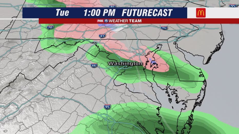 WASHINGTON - Chilly temperatures Monday and a possible mix of wintry weather into Tuesday remind us that we're not done with winter just yet!