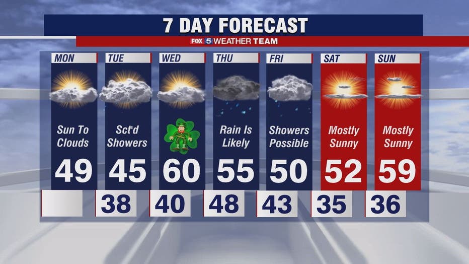 FOX 5 Weather forecast for Monday, March 15